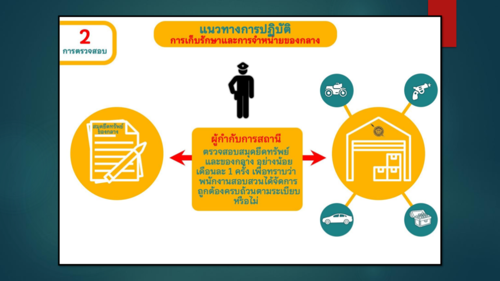 O23 การจัดการทรัพย์สินของราชการ ของบริจาคการจัดเก็บของกลาง และการรายงานผล